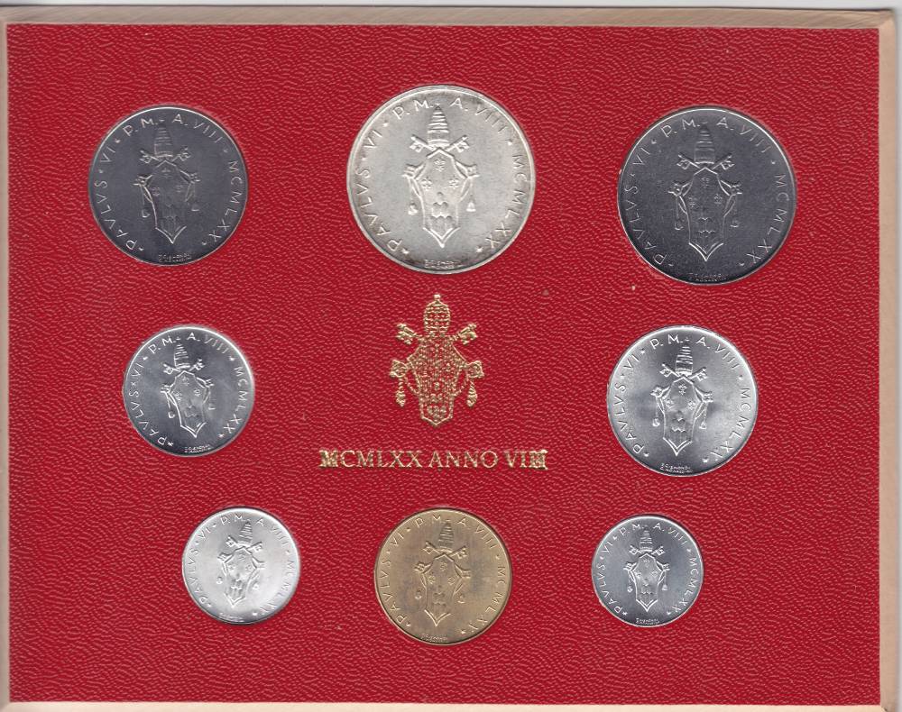 Münzen vom Vatikan im offiziellen KMS 1970 MCMLXX Vorderseite