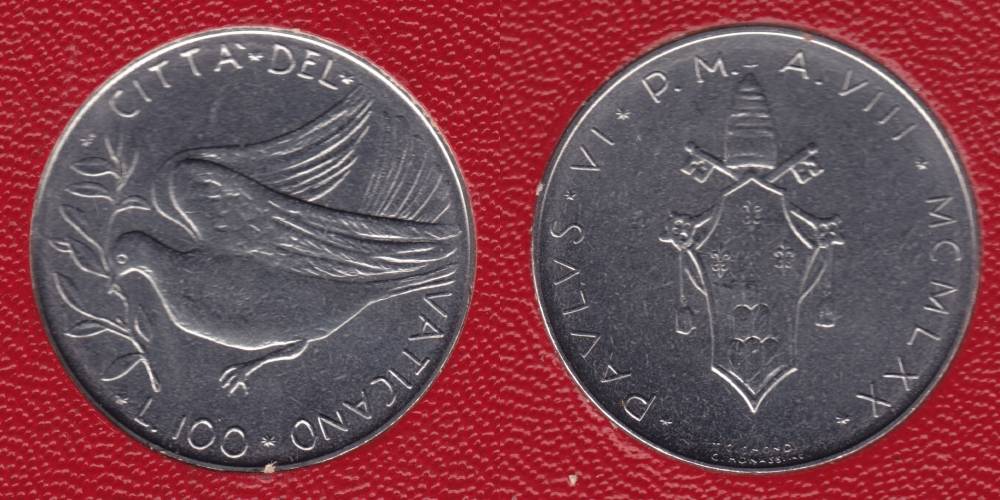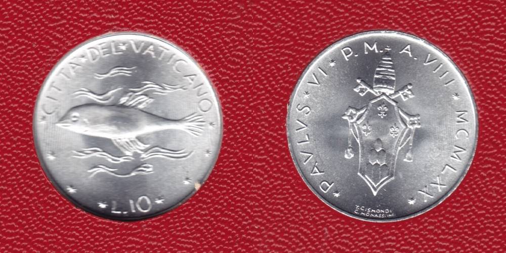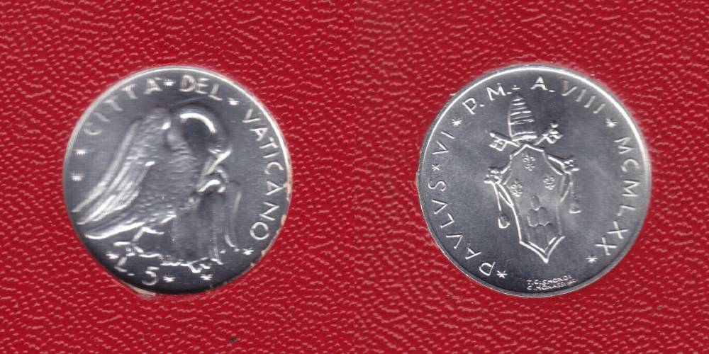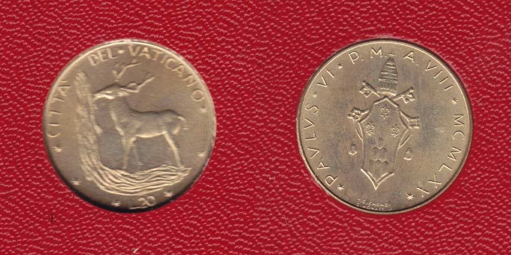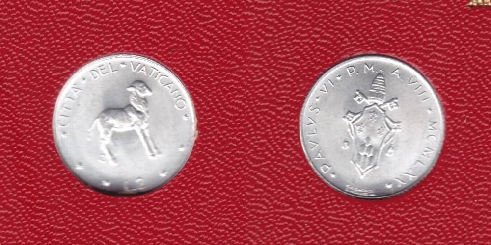 Münzen vom Vatikan im offiziellen KMS 1970 MCMLXX Rückseite