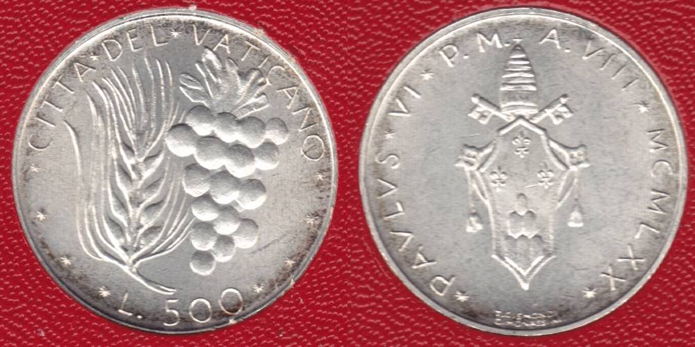 und Vatikan 8. und letzte Münze zu 500 Lire in Silber